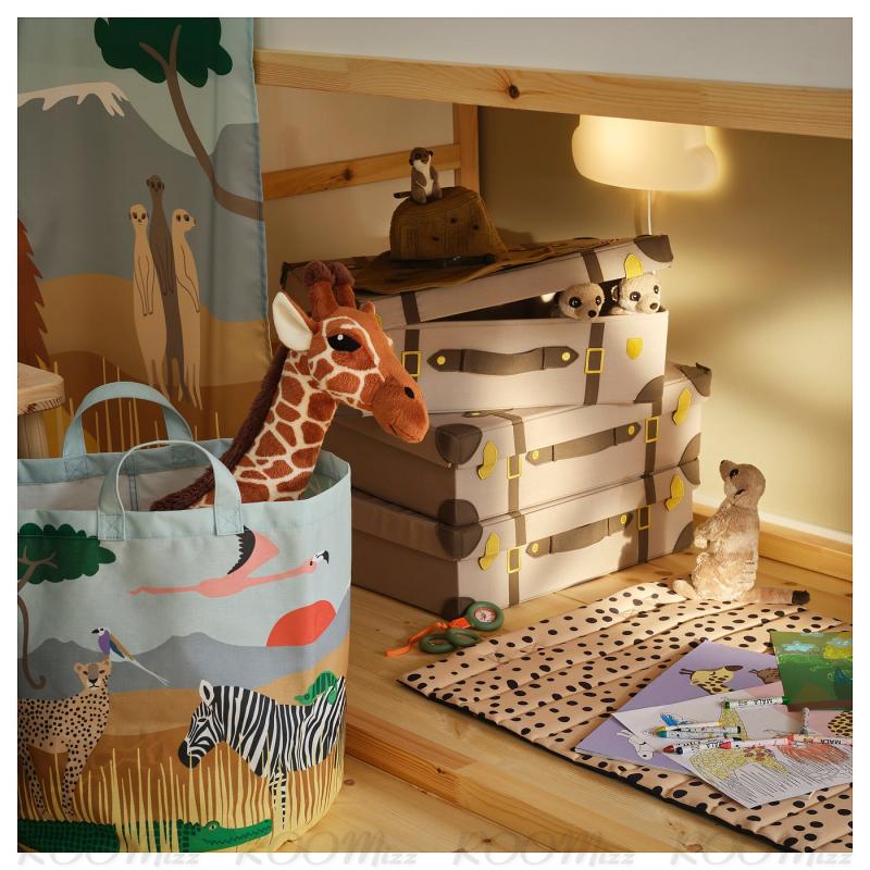 魅力的なサバンナが描かれた、たっぷり入る収納バッグ。おもちゃやタオル、洗濯物などを入れるのにぴったり。 軽量ながらもしっかり安定して自立し、持ち手付きなので簡単に移動できます