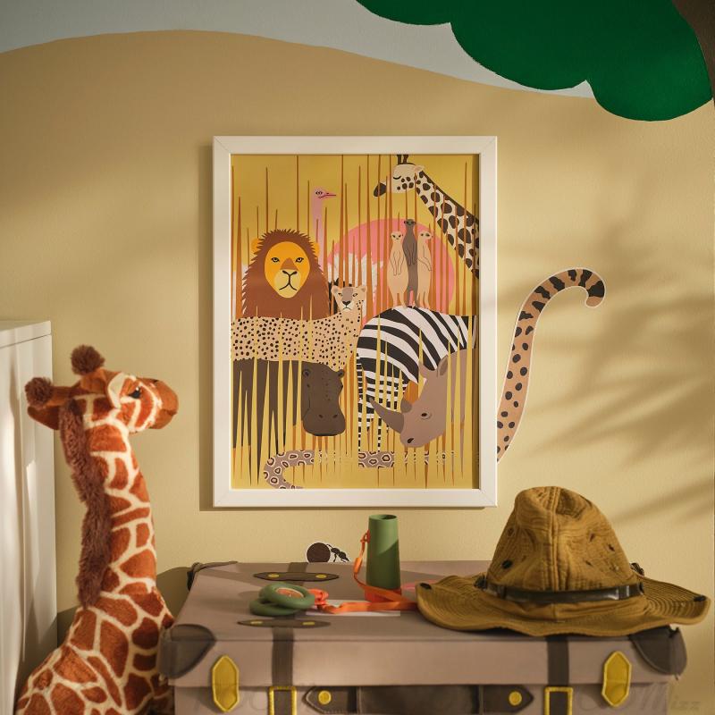 SANDLÖPARE/サンドローパレ コレクションでは、たくさんのわくわくする動物たちがサバンナで暮らしています。 その中のいくつかの動物がこのポスターに登場します。 どんな動物がいるでしょう?