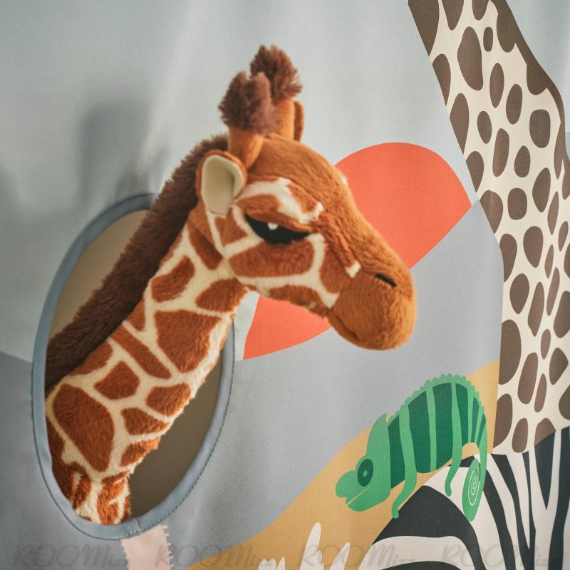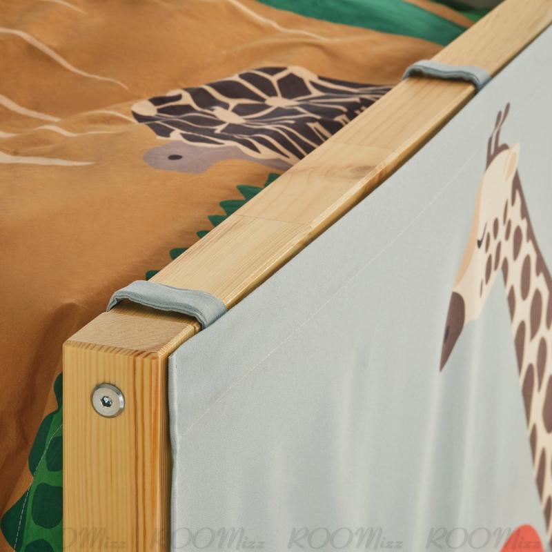 誰でもサバンナの動物たちと一緒に眠りたいはず。 KURA/キューラ ベッドをこのベッドカーテンで覆えば、まさにそれが楽しめます。 はしごの位置に関係なく、簡単にベッドカーテンをつるせます
