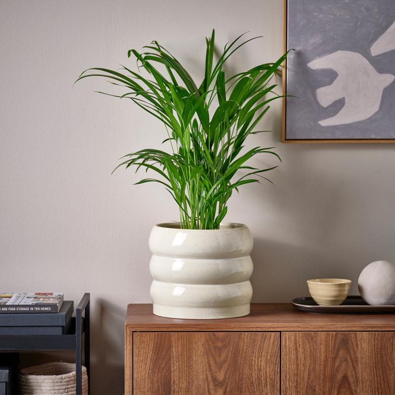 遊び心のあるフォルム、独特の色合いの違いが楽しめる釉薬(ゆうやく)が、家と植物に活気をプラスします。 単独でもステキですが、ほかの色や形の鉢カバーと組み合わせれば個性を演出できます