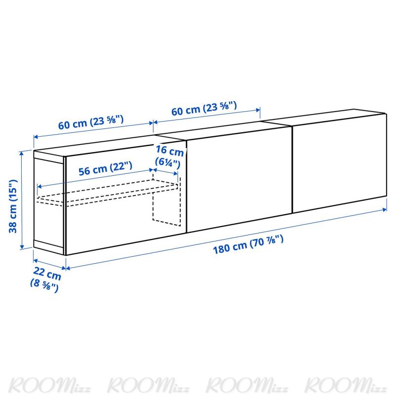 BESTÅ ベストー 壁取り付け式キャビネットコンビネーション - ブラックブラウン/ラップヴィーケン ブラックブラウン 180x22x38 cm