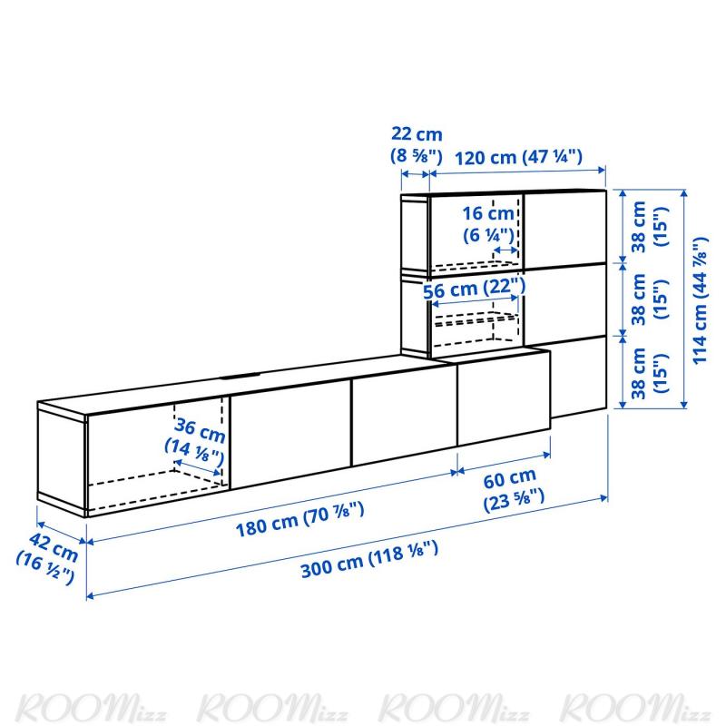 BESTÅ ベストー メディア収納コンビネーション - ホワイト ラップヴィーケン/ホワイト 300x42x114 cm