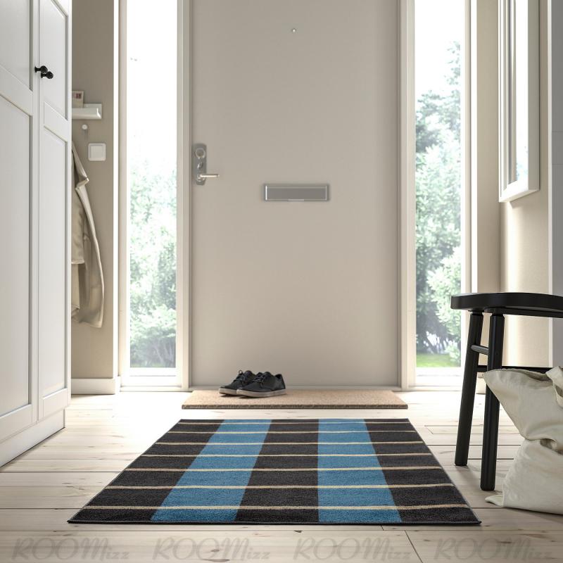ARBETSZON アルベートソン ラグ パイル短 - グレー ブルー/チェック 80x150 cm