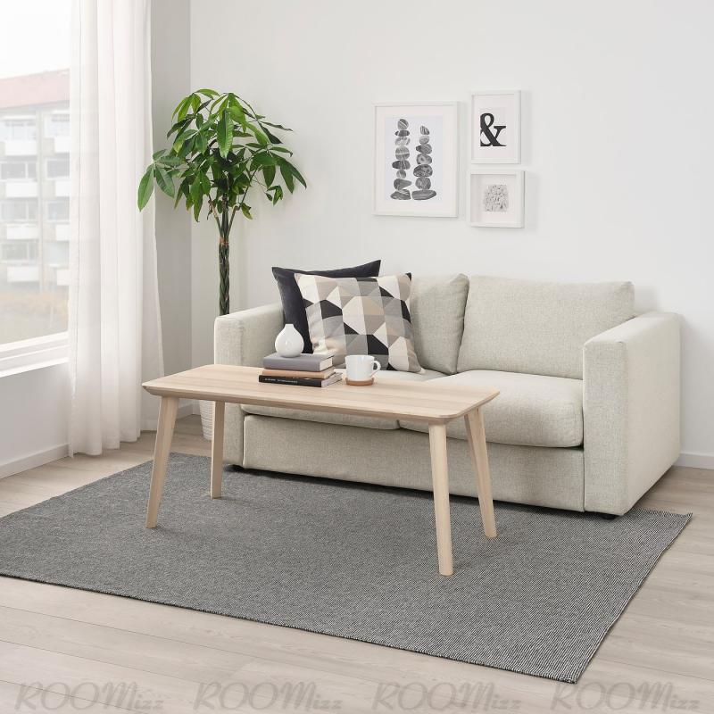 2‐3人掛けのソファと組み合わせるのにちょうどよいサイズのラグ。置く向きによって、ほかのサイズのソファにも合わせられます