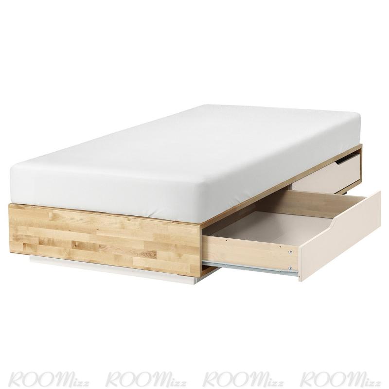 MANDAL マンダール ベッドフレーム 収納付き - バーチ/ホワイト 90x200 cm